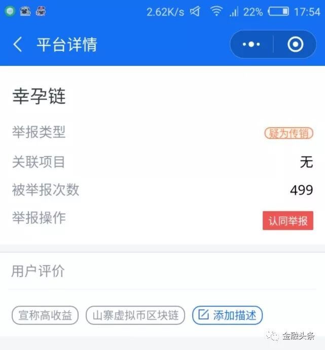 在腾讯官方推出的微信小程序“灵鲲金融风险查询举报中心”上,这几个币种共有千余次举报,理由均为“疑似传销币”。