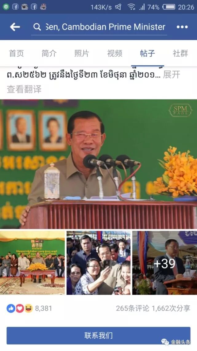 但实际上,翻看洪森的Facebook可以发现,这是一位酷爱PO图的首相。但凡出席活动,他都会将与民众的合影发至Facebook,每次的发图数量高达20-30张,其中就包括与俞凌雄合影的那次。