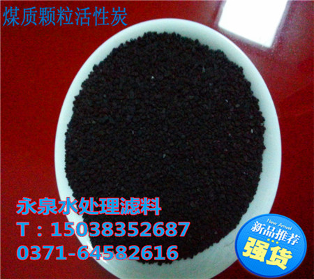 煤质颗粒活性炭广泛用于化工厂污水处理、电厂污水处理、化肥厂污水才、 造纸厂污水处理、食品厂污水处理、纯净水处理、 集团和家用净水器,饮水机及电厂、石油化工等水处理工程中,对饮用水污染严重城市的工厂、宾馆、各类清凉饮料等用水处理效果更佳。活性炭是一种多孔性的含炭物质, 它具有高度发达的孔隙构造, 是一种极优良的吸附剂, 每克活性炭的吸附面积更相当于八个网球埸之多. 而其吸附作用是藉由物理性吸附力与化学性吸附力达成. 其組成物质除了炭元素外,尚含有少量的氢、氮、氧及灰份,其結构则为炭形成六环物堆积而成。 由于六环炭的不规则排列,造成了活性炭多微孔体积及高表面积的特性。